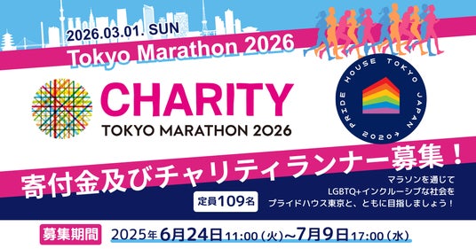 NPO法人プライドハウス東京(以下、プライドハウス東京)は、東京マラソン財団チャリティRUN with HEART(※1)の寄付先団体として、2026年3月1日(日)に開催される東京マラソン2026の寄付金及びチャリティランナーを109名募集します。