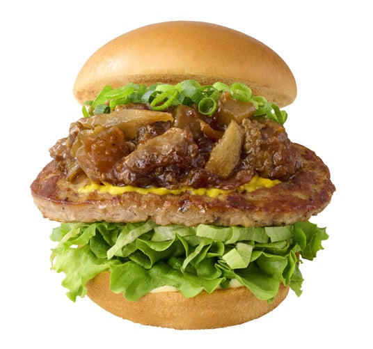 関西で親しまれている牛すじ煮込みをモス流にアレンジした商品です。国産牛すじとこんにゃく、ごぼうが入った牛すじ煮込みを大胆にパティの上にのせ、さらにその上に広島県産の青ねぎをのせています。"新とびきり"シリーズと同じ国産牛100%使用のパティ※を使っており、国産牛すじとの相性は抜群です。味噌と醤油の風味をしっかりと感じていただける、少し辛みがありつつもコク深い味わいをお楽しみください。