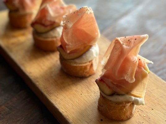 ★ゴルゴンゾーラチーズのムースとイチジク&生ハムコク深いブルーチーズを滑らかなムースに仕上げ、甘く熟したイチジクと塩気の効いた生ハムを添えた逸品。塩味・甘味・酸味が絶妙なバランスはワインとの相性抜群です。