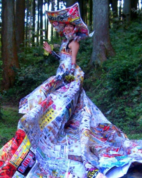 「新聞女」 西沢みゆき さんにしざわ・みゆき 1987年、関西女子美術短期大学在学中に、元具体美術協会の嶋本昭三氏に師事。卒業後、大手アパレル会社のデザイナーを経て、2001年より「新聞女」として世界各地で現地の古新聞を使ったアートパフォーマンスを始める。国内外の著名美術展で発表を重ね、受賞も多数。