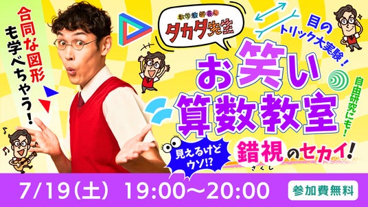 タカタ先生のお笑い算数教室☆見えるけどウソ?錯視のせかい~目のトリック大実験!~日時:2025年7月19日(土)19:00~20:00