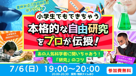 小学生でもできちゃう☆本格的な自由研究をプロが伝授!日時:2025年7月6日(日)19:00~20:30