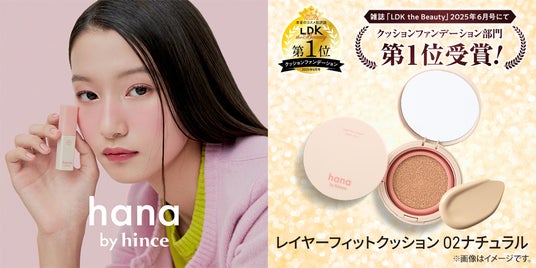 このたび、「hana by hince レイヤーフィットクッション 02ナチュラル」が、人気美容情報誌「LDK the Beauty 2025年6月号」のクッションファンデーション部門において、ベストバイ・第1位を獲得いたしました。