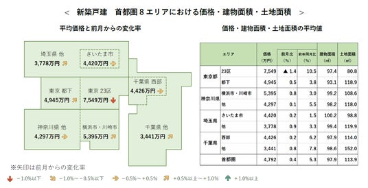 ●首都圏の新築戸建の平均価格は4,792万円で、前月比+0.4%と4カ月連続で上昇。前年同月比は+5.3%と9カ月連続で上昇。