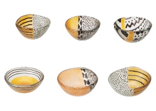 手作業で丁寧に成形されたガラスのボウルに、アフリカンテイストの模様をあしらった一品。やわらかなフォルムと、光をやさしく透かす質感が、夏のテーブルに涼やかな彩りを添えます。果物や冷たいデザート、サラダなどを美しく盛りつけられるサイズ感で、ガラスならではの透明感と温もりを同時に楽しめるアイテムです。