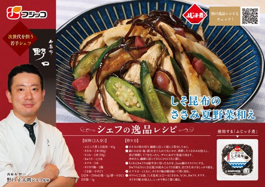 フジッコ株式会社(本社:神戸市中央区/代表取締役社長執行役員:福井正一)は、夏場に向けて、これからの日本料理界を担う若手シェフたちが考案した「ふじっ子煮」シリーズのアレンジレシピを提案いたします。レシピ内で使用されている「ふじっ子煮 ごま昆布」「ふじっ子煮 しそ昆布」「ふじっ子煮 こもち昆布」「ふじっ子煮 おかか昆布」の4商品のパッケージデザインを変更して2025年7月1日(火)より販売いたします。