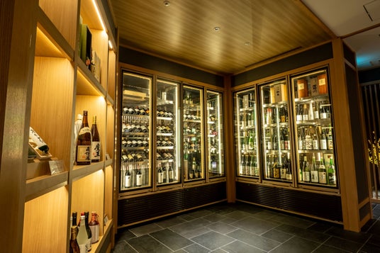 「木の花」入口の最高級美酒を取り揃えたセラー