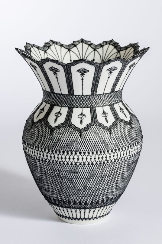 金森絵美 「Twist Knitting Vase -Black and White-」 2025年 個人蔵
