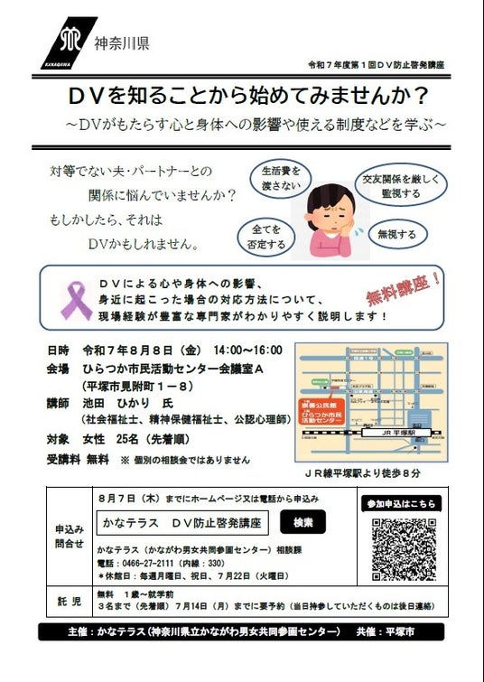 令和7年度第1回DV防止啓発講座 DVを知ることから始めてみませんか? 参加者募集中