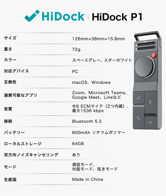 オーディオハードウェア企業Sugr Technology Hong Kong Limited社(2014年香港設立、代表取締役:宋少鹏)は、ChatGPTと連携し、ワイヤレスイヤホンを装着したまま録音できる次世代AIボイスレコーダー「HiDock(ハイドック)P1 & P1 mini」の日本先行予約販売を、応援購入サービスMakuake(マクアケ)にて、2025年6月19日(木)11:00より開始いたしました。