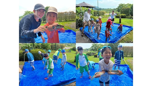 ホテルから徒歩圏内の穏やかな川で、川遊びを楽しみます。さらにその他、鮎のつかみ取り体験を行います。つかまえた鮎は、塩焼きにして夕食でいただきます。新鮮な旬の魚を味わいます。