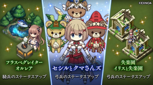 期間中のイベントでは、『ジェミニシード』コラボ限定の進軍スキン「セシルとクマさんズ」や、コラボ限定オーナメント「オルレア」「フラスベグレイター」、拠点スキン「失楽園」と「イリスと失楽園」を獲得できます。