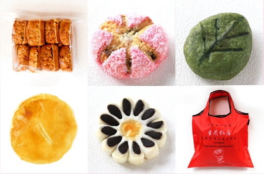内 容:番餅切り落とし / 手作り中華菓子4種 紅開花酥(ホンカイファス)・青葉酥(アオバス)・太陽餅(タイヤンピン) ・菊花酥(キッカス) / 重慶飯店×ROUROU オリジナルショッピングバッグ