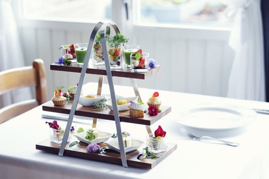 「ハーブガーデン」をイメージした前菜スタンドやメイン料理には、レストランに隣接する"シェフズガーデン"で育った朝摘みのエディブルフラワー(食べられる花)やフレッシュハーブをたっぷりと使用