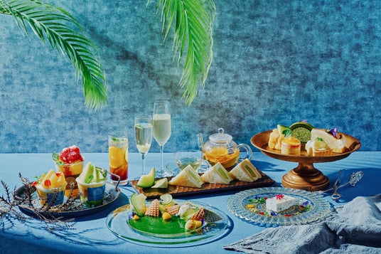 色鮮やかな「ハーブガーデン」をイメージした前菜やメイン料理に加え、「涼」を感じるスペシャルメニュー、スイーツ、ドリンクが登場。⾊鮮やかな前菜を3段の専用スタンドに並べた「前菜スタンド~ガーデンからのおもてなし」と「Herb Garden」をイメージしたメイン料理とパンがセットになった「ガーデンプレートコレクション」。優雅なランチタイムをお過ごしいただけるメインダイニングです