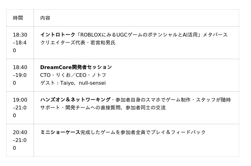 「DreamCore Meetupは、AIと人間の創造性が交差する"実験場"です。テキスト一行から生まれるゲームの瞬間を、ぜひその目で確かめてください。」