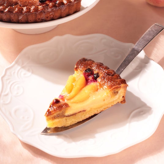 サクサクのタルトにカスタードと紅茶のダマンドを絞り、山形県産の白桃を並べて焼き上げました。