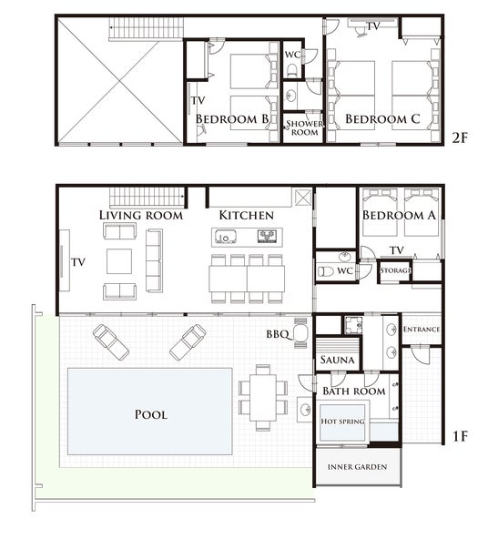 設備 :天然温泉/サウナ/プール/水風呂/BBQ/Wi-Fi/キッチン/ランドリーほか