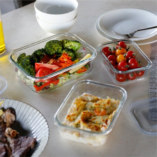 食卓にもそのまま出せる。温め直しもOKなガラスの保存スタイル