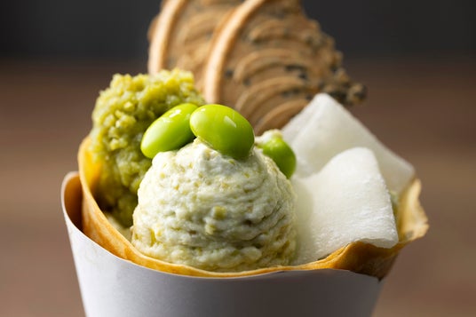 クリーミーなくちどけのずんだホイップと香り高いずんだ餡をふんだんに使い、やさしい甘みとふくよかな豆の風味が広がる、宮城ならではの味わいに。もちもちのぎゅうひと、香ばしい黒ごませんべいのパリッとした歯ごたえが楽しい一品です。仕上げに添えた枝豆トッピングが、見た目にも鮮やかで、まるで"食べるずんだパフェ"のよう。