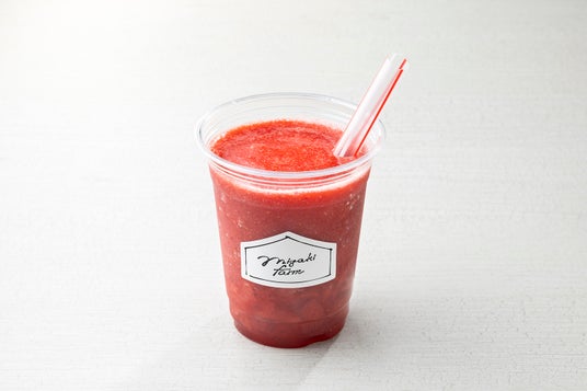 ミガキイチゴのフローズンいちごをまるごと使用。ジュージーな果肉シロップと合わさった、さっぱりおいしいスムージーです。