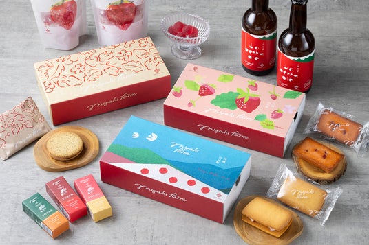 贈り物やお土産にぴったりの「MIGAKI FARM CRAFT」シリーズの商品も販売いたします。6月15日(日)新発売の焦がしバターとごろっといちごの贅沢フィナンシェや、いちごソースがとろけ出るいちごミルクサンドクッキーも。