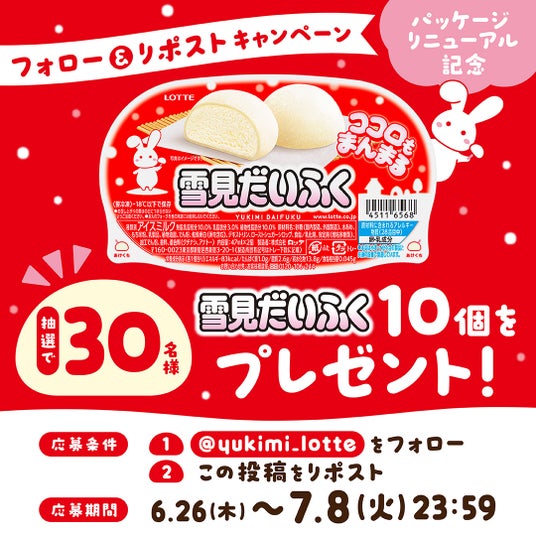 パッケージリニューアルを記念して、雪見だいふく公式Xアカウントでプレゼントキャンペーンを実施します。ぜひご参加ください!