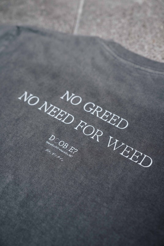 今年は特に大麻の検挙者数増加が懸念される20~30代の若年層への啓発をさらに強化するため、Tシャツ「DO?BE? TEE」を制作しました。Tシャツの胸元には、当財団のキャラクターである「ダメ。ゼッタイ。」くんと「REBIRTH PROJECT」のロゴを配置しています。背面にプリントされた「NO GREED NO NEED FOR WEED」のフレーズには、「欲にまみれるな。大麻は必要ない。」という強いメッセージが込められています。さらにその下には、スラングで大麻を意味する"DOOBIE"を逆手に取り、「あなたはどうする?(DO?)」「どうなりたい?(BE?)」という、若者への問いかけを込めたメッセージをデザインに反映。最後に薬物乱用は「ダメ。ゼッタイ。」という力強い想いを表しています。