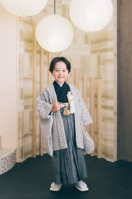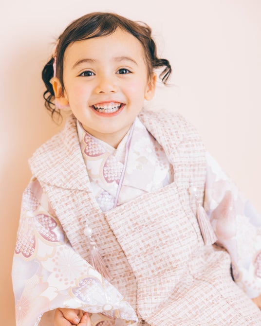 「高級店のオートクチュールのような存在感」を意識したオリジナル衣裳を独自に製作。既製服だけでなく、布のサンプルから集め、色や素材を厳選いたしました。中でも"新しい七五三"に挑戦したい方におすすめしたいのは、着物なのに「ツイード素材」「レース素材」で仕立てられた当店オリジナル衣裳です。時代や和洋の文化など、枠にとらわれない「ボーダーレス」な衣裳は、大人になってから見返してもきっと変わらず"可愛い"と感じられる写真を残せます。また、テキスタイルデザインから製作し、反物を誂え、縫製した、完全オリジナルの七五三衣裳を準備中。秋までにリリースされる予定です。2025年のお祝いにもご検討いただけます。