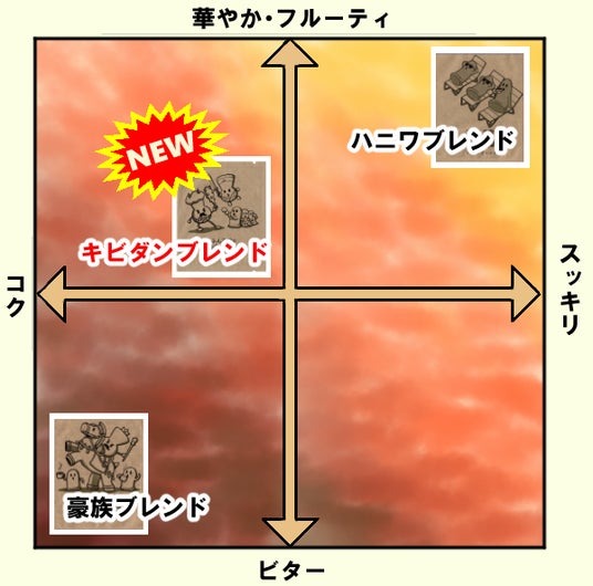 商品は従来の「豪族ブレンド」「ハニワブレンド」に新商品「キビダンブレンド」を加えた三種の神味(フレーバー)として、コーヒー好きの方にも満足いただけるラインナップです。