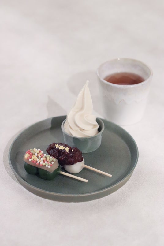 2色の団子と自家製ヴィーガンソフトを一度に楽しめる、お得なヘルシースイーツセットが新登場!コスメキッチン アダプテーションがセレクトした日本茶とともに楽しむ特別な和スイーツ体験を<梅田限定>