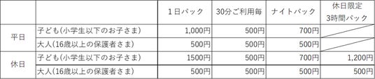 ※スクールホリデー期間(春休み・GW・夏休み・冬休み等)は平日でも休日料金となります。