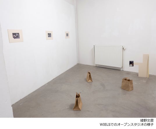 綾野は、言葉の意味・語源を言葉遊び的に駆使して、文化的な習慣、伝統、信念の表現に疑問を投げかけています。本展では、ベルギーの国民食であるフリット(フライドポテト)の紙皿というイメージを用い、移民を含めた現地の人々の個人的・集団的な経験や記憶を、作者個人というフィルターをとおして作り直し「翻訳された経験」を展開します。