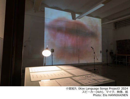 小宮は音楽のさまざまな規範を問い直しながら、新しい音楽形式を領域横断的に模索しています。ヘルシンキ滞在中、日本語とフィンランド語には類似する単語(発音)や文法構造が多い点に着眼し、両国の合成言語「Koe語」を作成しました。本展では、民謡についての調査や現地アーティストとの協働を通じて、作家による架空の民謡を取り扱ったメディアインスタレーション/パフォーマンスを展開させます。
