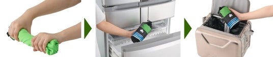 2)タオルは、付属の収納袋に入れた状態で丸ごと冷凍庫で凍結することができる。
