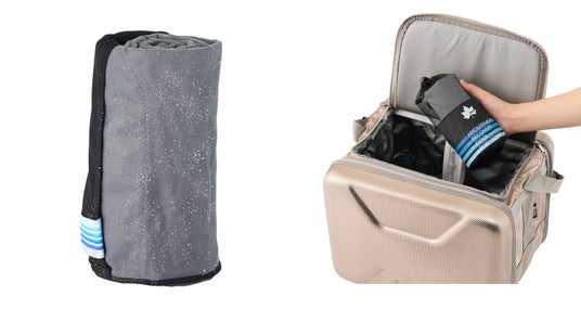 冷凍タオルとして使う際は、水で軽く濡らして絞り、付属の収納袋に入れた状態で冷凍庫に入れるだけなので簡単です。さらに、タオルにメッシュポケットが付いており、別売りの「氷点下リカバリー・クールアシスト」を入れて使用することで首や脇などをピンポイントに冷やすことができ、冷却効率が高まります。