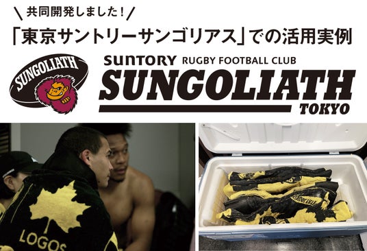 「氷点下リカバリー・クールボディタオル」のプロ仕様モデルは、ラグビーチーム「東京サントリーサンゴリアス」と共同開発し、実際に選手が試合のクールダウンで使用。
