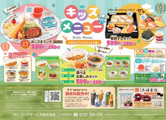サトフードサービス株式会社が運営し、国内199店舗を展開する「和食さと」は、「笑顔あふれるお食事を」をコンセプトに、みなさまの食事を通じた団らんの時間をより楽しく、ちょっと特別な気分ですごせる和食レストランです。6月26日(木)から、小さなお子さま連れのご家族にも、より「和食さと」でのお食事をお楽しみいただけるよう、「離乳食」の無料提供サービスを和食さと全店舗で開始しますのでお知らせします。本サービスでは、1歳未満のお子様おひとりにつき1食、離乳食を無料提供いたします。 (離乳食の対象月齢は生後7か月~)その他にも「和食さと」では、ご家族みなさまで気兼ねなくお食事をお楽しみいただけるよう、様々なサービスを展開。食器類については、プラスチック食器(コップ・お皿)や乳幼児用の食器(スプーン、フォーク、フードカッター)をご用意。また、ほぼ全店にて個室・半個室タイプのテーブルもご用意しておりますので、ご家族でくつろいでお過ごしいただけます。さらに、お子さま向けサービスの「さとキッズくらぶ」に店舗でご登録いただくと様々な特典やスタンプカードによるプレゼントもございます。ぜひ「和食さと」でご家族そろって団らんのひとときをお過ごしください。