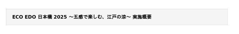ECO EDO 日本橋 2025 公式WEBサイト:https://www.nihonbashi-tokyo.jp/ecoedo/