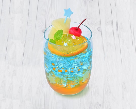 やわらかな鴨のパストラミに甘ずっぱいオレンジを添えたとっておきの一皿「コックカワサキとくせい 鴨のパストラミ~オレンジオーシャン風~」や、オレンジたっぷりのまるでワドルディみたいなパフェ「ワドワド☆おひさまオレンジパフェ」、青い海のようなソーダとオレンジのコントラストがとってもトロピカルな「ぷかぷかプププ☆トロピカルソーダ」が新登場。そのほか、サングラスで決めた「夏のカービィバーガー&ミートパスタ」や新世界の海辺を疾走する「ヘンケイ!くるまほおばりケーキ~WELCOME TO THE NEW WORLD!~」など、夏を満喫できる全7種のメニューを提供いたします。