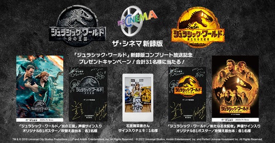 『(吹)ジュラシック・ワールド【ザ・シネマ新録版】』(C) 2015 Universal Studios and Amblin Entertainment, LLC. All Rights Reserved. 『(吹)ジュラシック・ワールド/炎の王国【ザ・シネマ新録版】』TM & (C) 2018 Universal City Studios Productions LLLP and Amblin Entertainment, Inc. All Rights Reserved. 『(吹)ジュラシック・ワールド/新たなる支配者【ザ・シネマ新録版】』(C) 2022 Universal Studios, Amblin Entertainment, Inc. and Perfect Universe Investment Inc. All Rights Reserved. 『ジュラシック・パーク』(C) 1993 UNIVERSAL CITY STUDIOS, INC. AND AMBLIN ENTERTAINMENT, INC. All Rights Reserved. 『ロスト・ワールド/ジュラシック・パーク』(C) 1996 Universal City Studios, Inc. & Amblin Entertainment, Inc. All Rights Reserved. 『ジュラシック・パーク III』TM &(C) 2001 Universal Studios and Amblin Entertainment, Inc. All Rights Reserved.