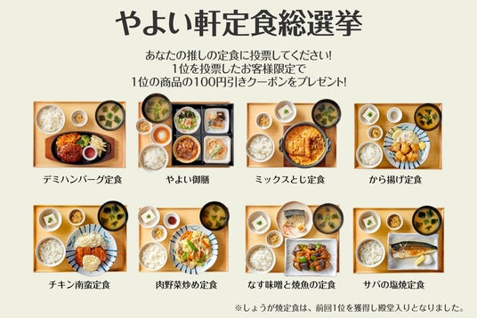 ※1位に選ばれた定食にご投票いただいた方のみ、やよい軒アプリ内にクーポンが表示されます。