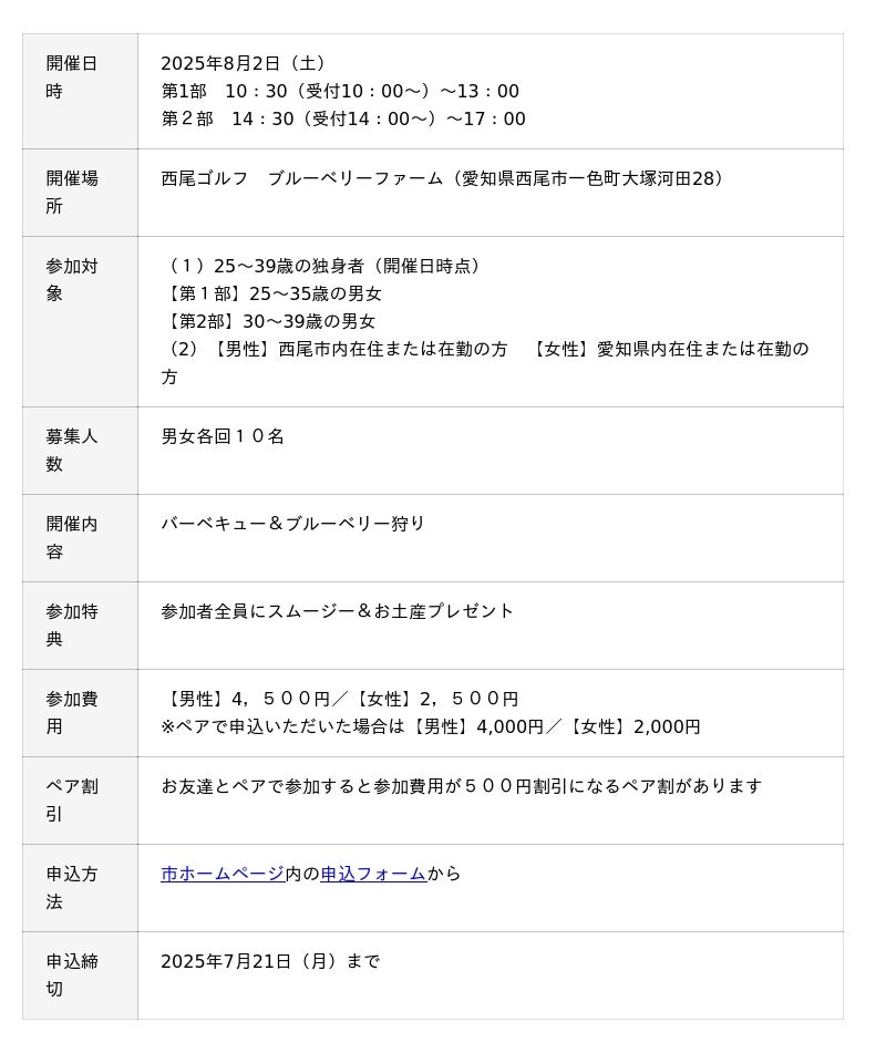 【愛知県西尾市】「にしおde 婚活第3弾」の参加者募集
