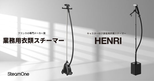 以下「DMM」 )が展開する「DMM.make PRODUCTS」は、SteamOne SAS(本社:フランス、パリ市、代表 Olivier Gabison、以下「SteamOne」)の「業務用衣類スチーマー」(品番:JPPRO2000S)と、キャスター付き家庭用衣類スチーマー「HENRI(ヘンリー)」(品番:JPJK300B)を、2025年6月26日(木)より全国の取扱い店舗にて予約受付開始、2025年7月3日(木)より一般発売することをお知らせいたします。