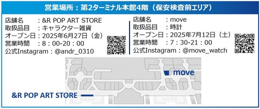 空港初出店!第2ターミナルに催事店舗オープン!!ポップなアートキャラクターストア「&R POP ART STORE」日本の時計が集まるウォッチセレクトストア 「move」