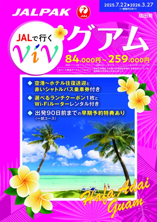 JALで行くグアムツアー 価格固定型商品「ViVグアム」 2025年6月26日(木)14:00販売開始