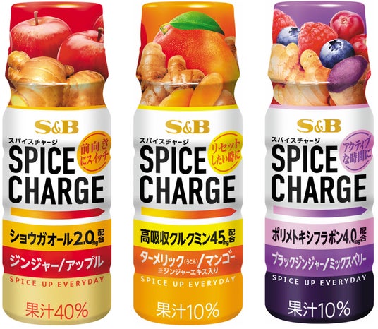 ジャー/アップル」「スパイスチャージ ターメリック(うこん)/マンゴー」「スパイスチャージ ブラックジンジャー/ミックスベリー」を新発売します。