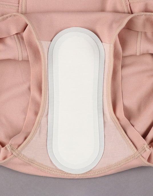 裏側に繊維でできた薄い固定テープをつけ、ワンタッチの手軽さでさまざまなショーツのマチに固定していただけます。固定テープは、着脱時の音が気にならない静音仕様。また中央のデリケート部位はやわらかい生地のみのため、からだになじみ装着時に違和感を感じにくいように仕上げました。