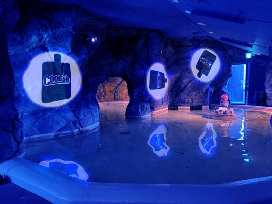 今年3月にリニューアルオープンした屋外エリア「ロックマウンテン」一帯が、「クーリッシュゾーン」としてお楽しみいただけます。同商品のCMに登場する「巨大な白き龍・バニラドラゴン」をイメージしたコラボスライダー「バニラドラゴンスライダー」では「クーリッシュ」を飲んだ時のような爽快感あふれる滑走をご体験いただけます。また、「クーリッシュ」のパッケージを意識した鮮やかなブルーが特徴の「クーリッシュ 洞窟風呂」では「クーリッシュ」をイメージした入浴料「く~りっし湯」を使用。甘いバニラの香りに包まれる心地の良いバスタイムをお楽しみいただけます。