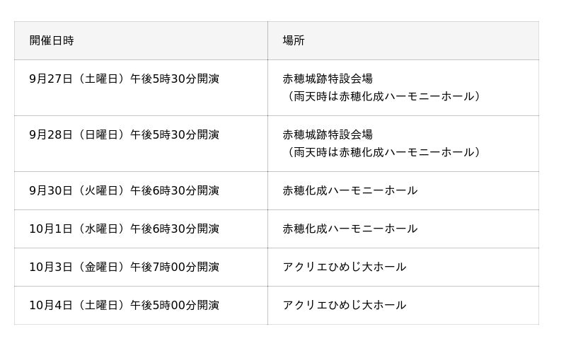 - 姫路公演の抽選結果・チケット受け取り方法はメールにて通知